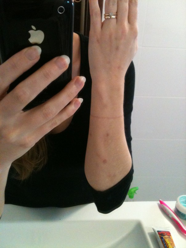 So when my sores start to vanish I start to notice my scars a lot more. This photo doesn’t really do the scars justice but you can still make them out – they are the purple spots on my arm/hand. The colder it gets or the colder I feel the more pronounced these scars become. And I have them ALL over my body. Legs, arms, face, back, stomach… bottom… you name a body part and I can guarantee you it is covered in scars. It gets me down. I know I shouldn’t let it get me down but it does. Even if I stop the picking I still won’t be able to enjoy my skin because I have essentially wrecked it. However I have heard somewhere (not sure where) that skin renews itself every 7 years. So I’m going to hold onto the hope that I won’t always be scarred… or at least they won’t always be so noticeable. In the meantime I am using this: